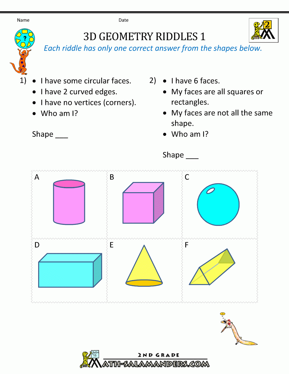 Free Geometry Worksheets 2nd Grade Geometry Riddles
