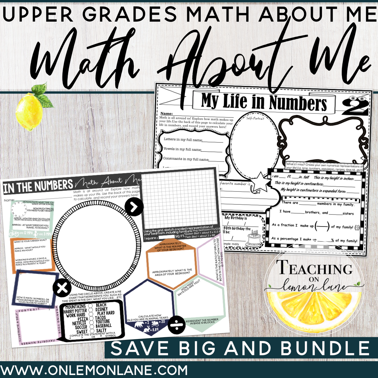 Math About Me For Upper Grades BUNDLE Math All About Me 2 Posters Included