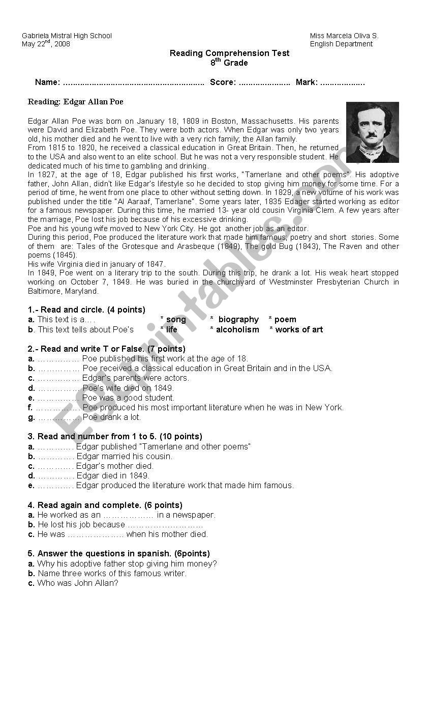 Reading A Biography ESL Worksheet By Marceoliva