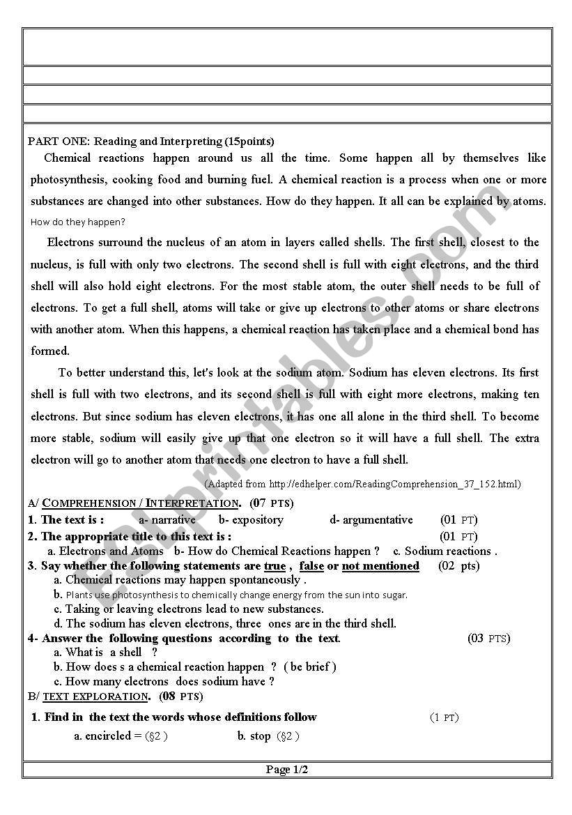 Chemical Reactions Reading Comprehension Passage And Questions PDF Teaching Resources