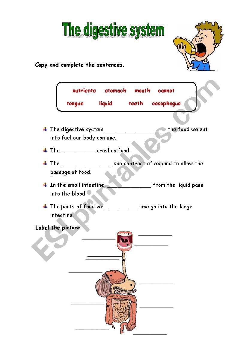 The Digestive System Activities ESL Worksheet By Mariola PdD
