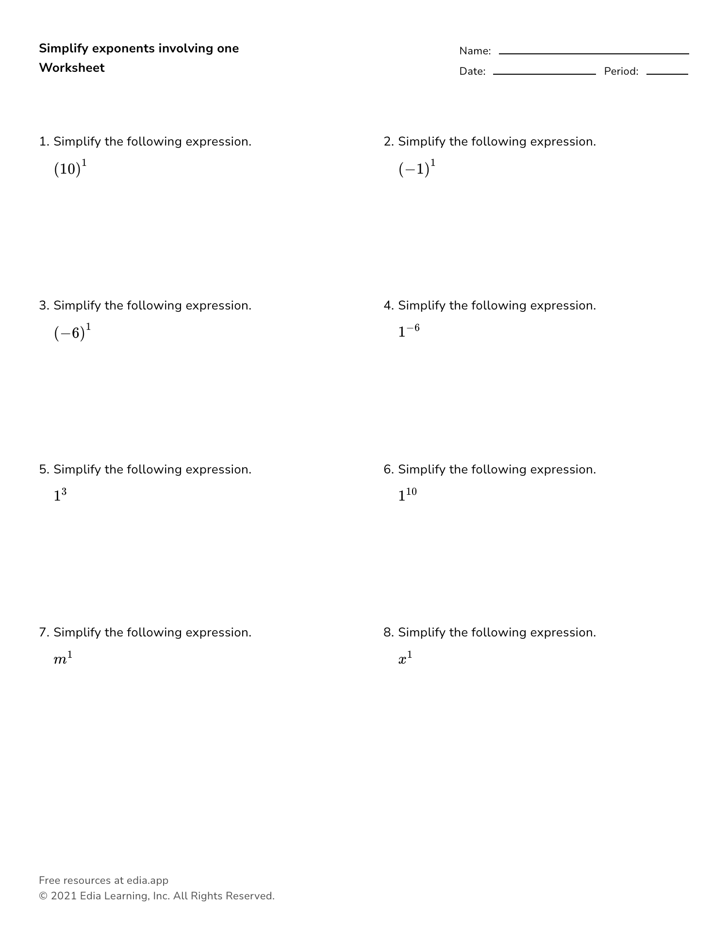 Free Exponents Worksheets