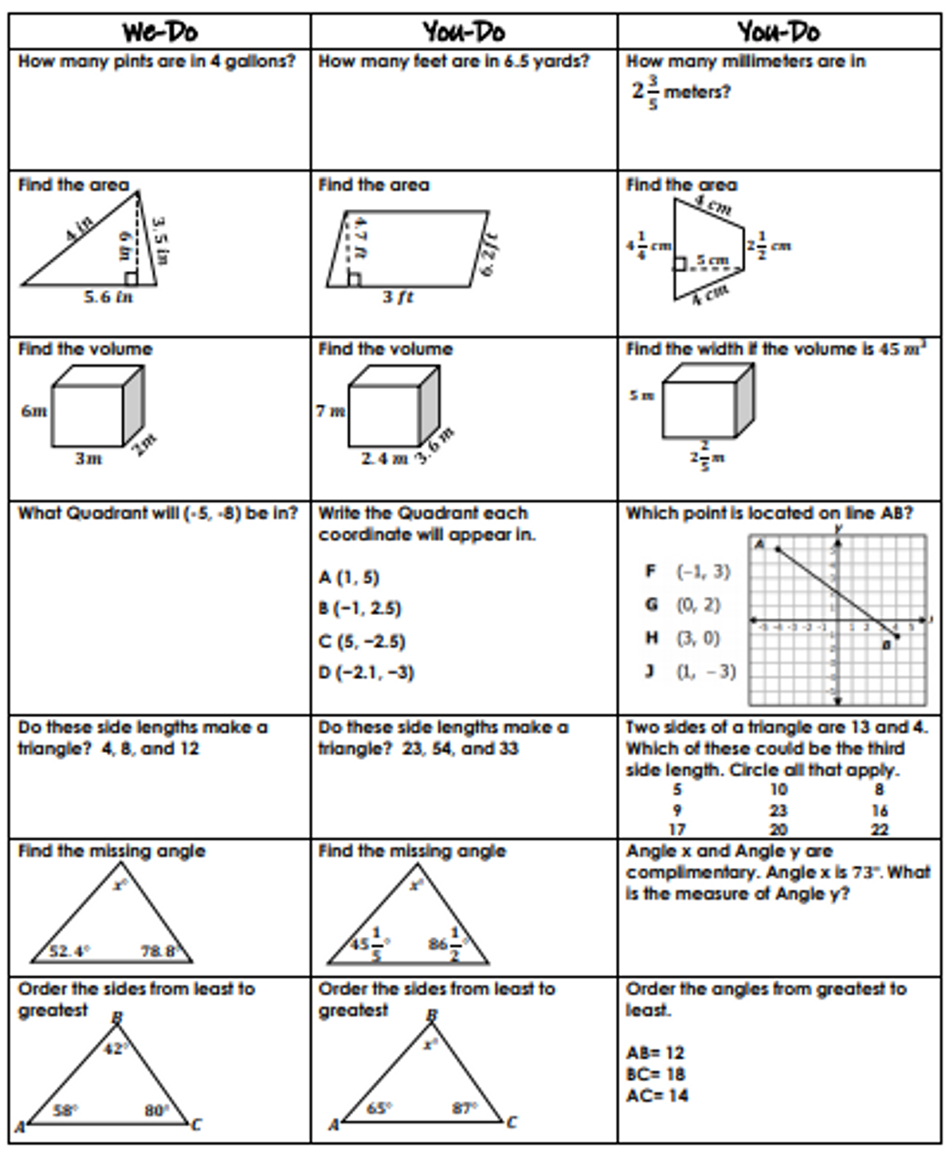 6th Grade Geometry Worksheets