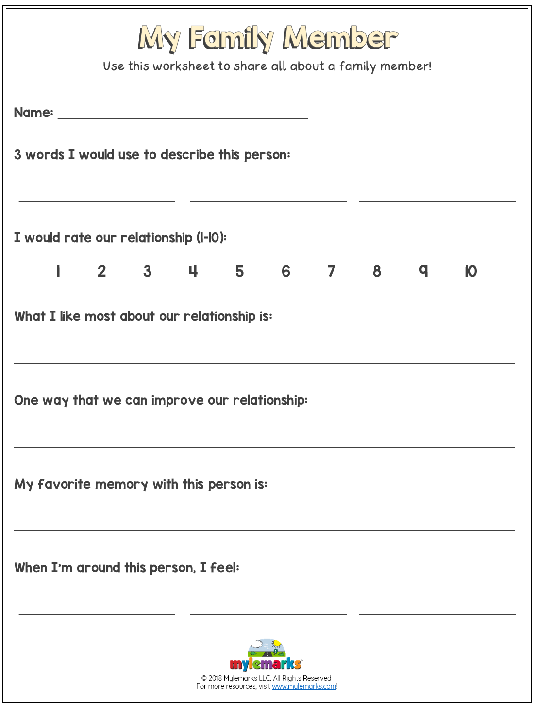 Family Questions Activity Worksheet Therapist Aid Worksheets Library