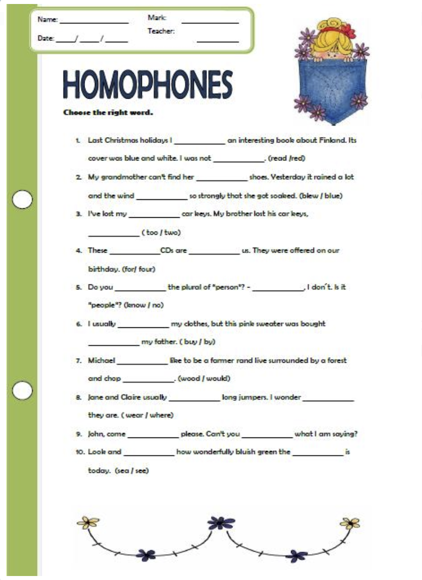 Free Homophones Worksheets For Kids And Classroom
