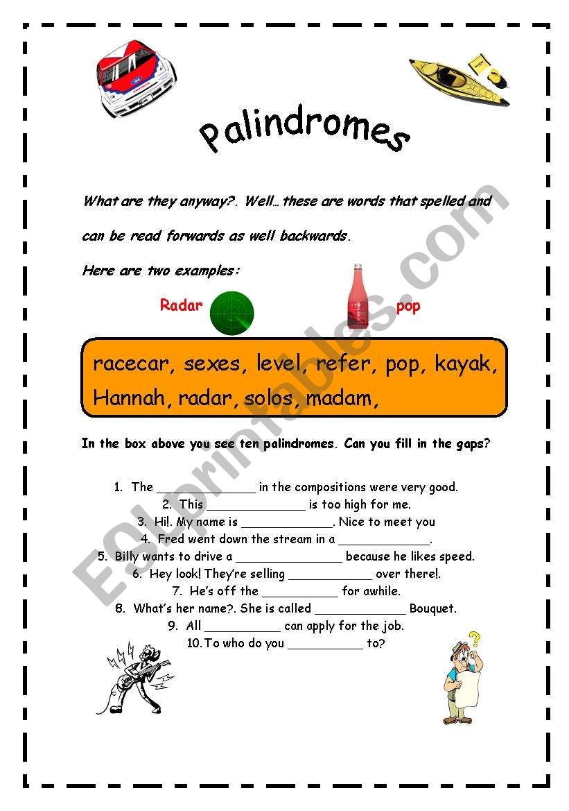 Palindromes ESL Worksheet By Errie