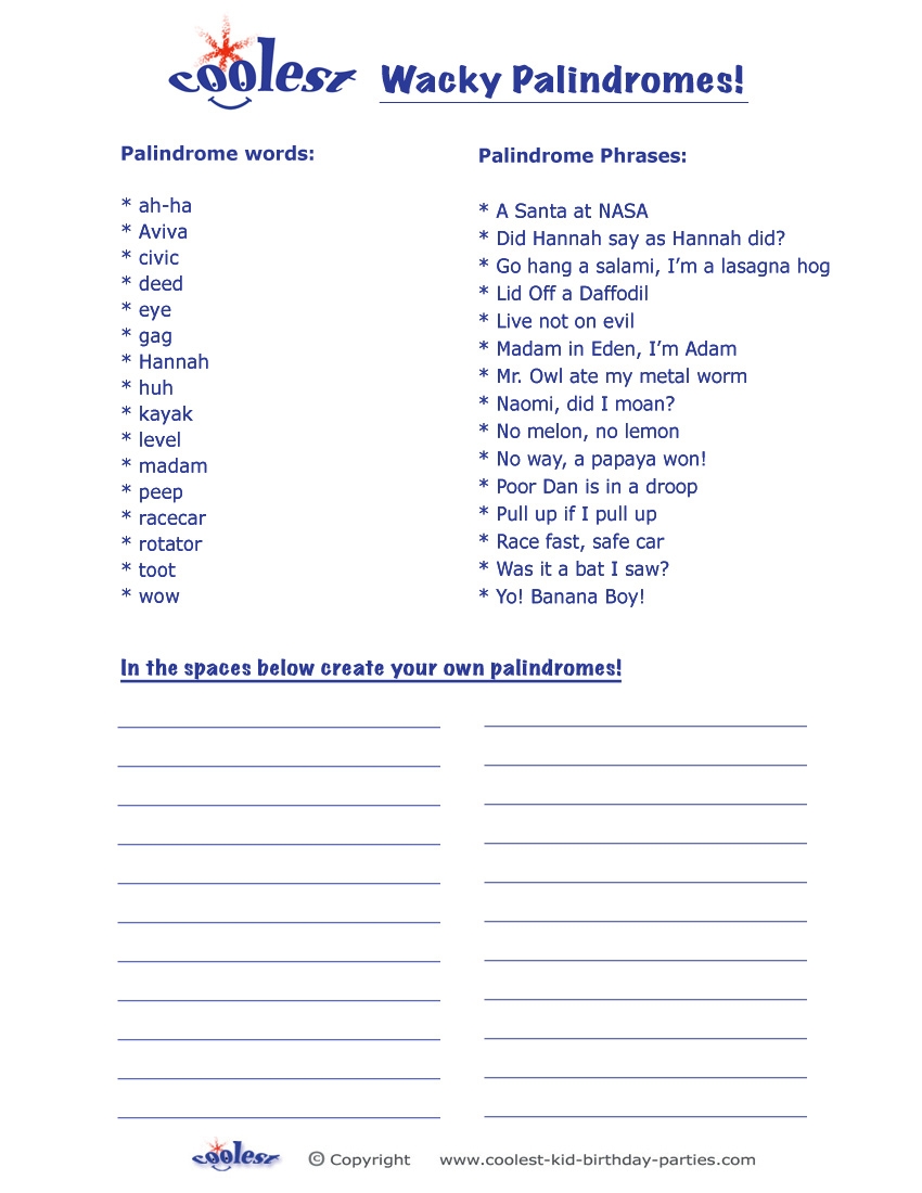 Printable Palindromes Coolest Free Printables