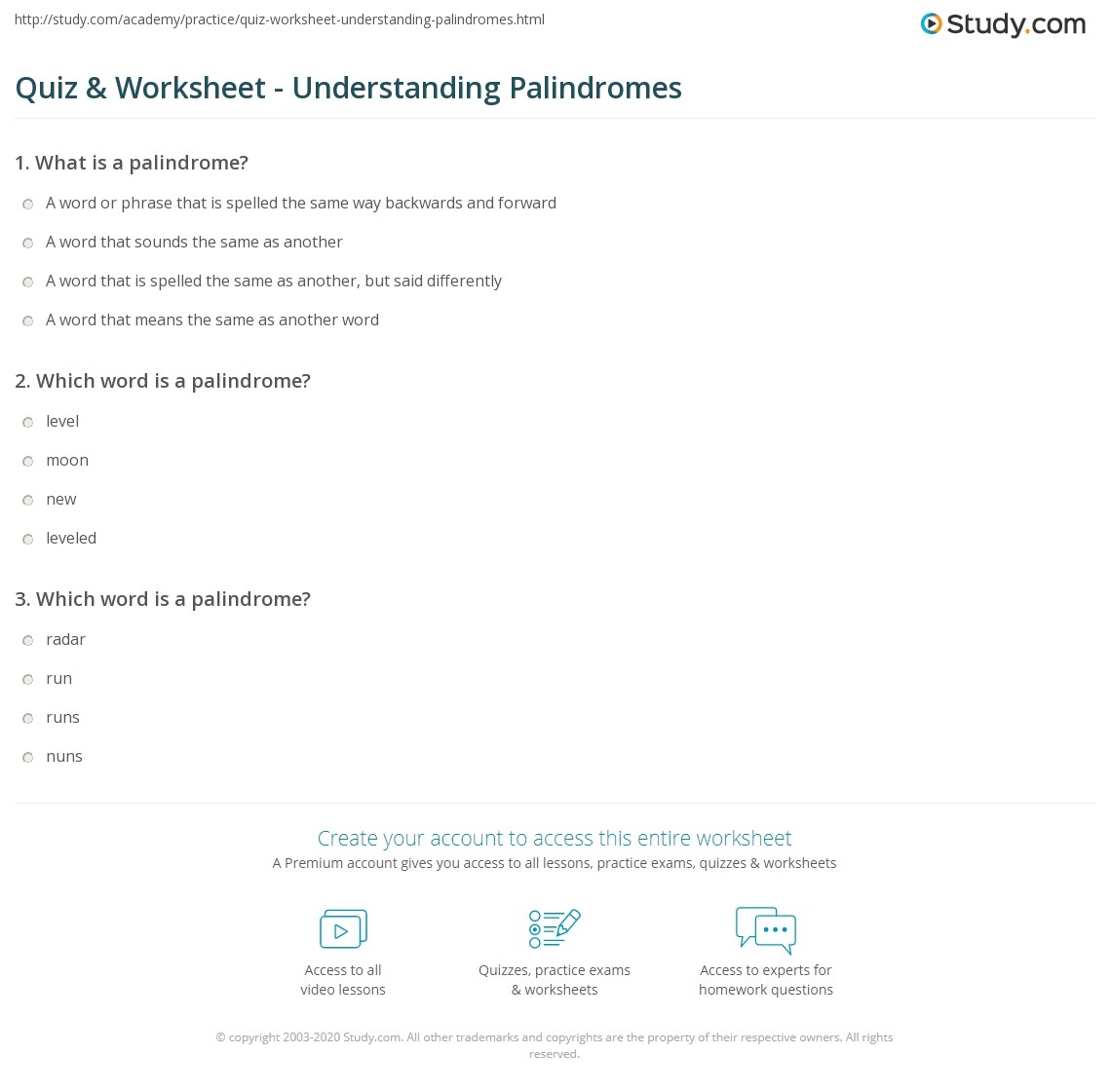 Quiz U0026 Worksheet Understanding Palindromes Study