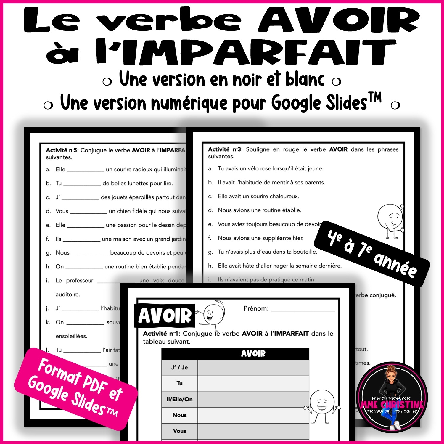 Le Verbe AVOIR L IMPARFAIT Exercices Et Quiz French Imperfect Verbs Mme Christine Ressources Fran aises French Resources