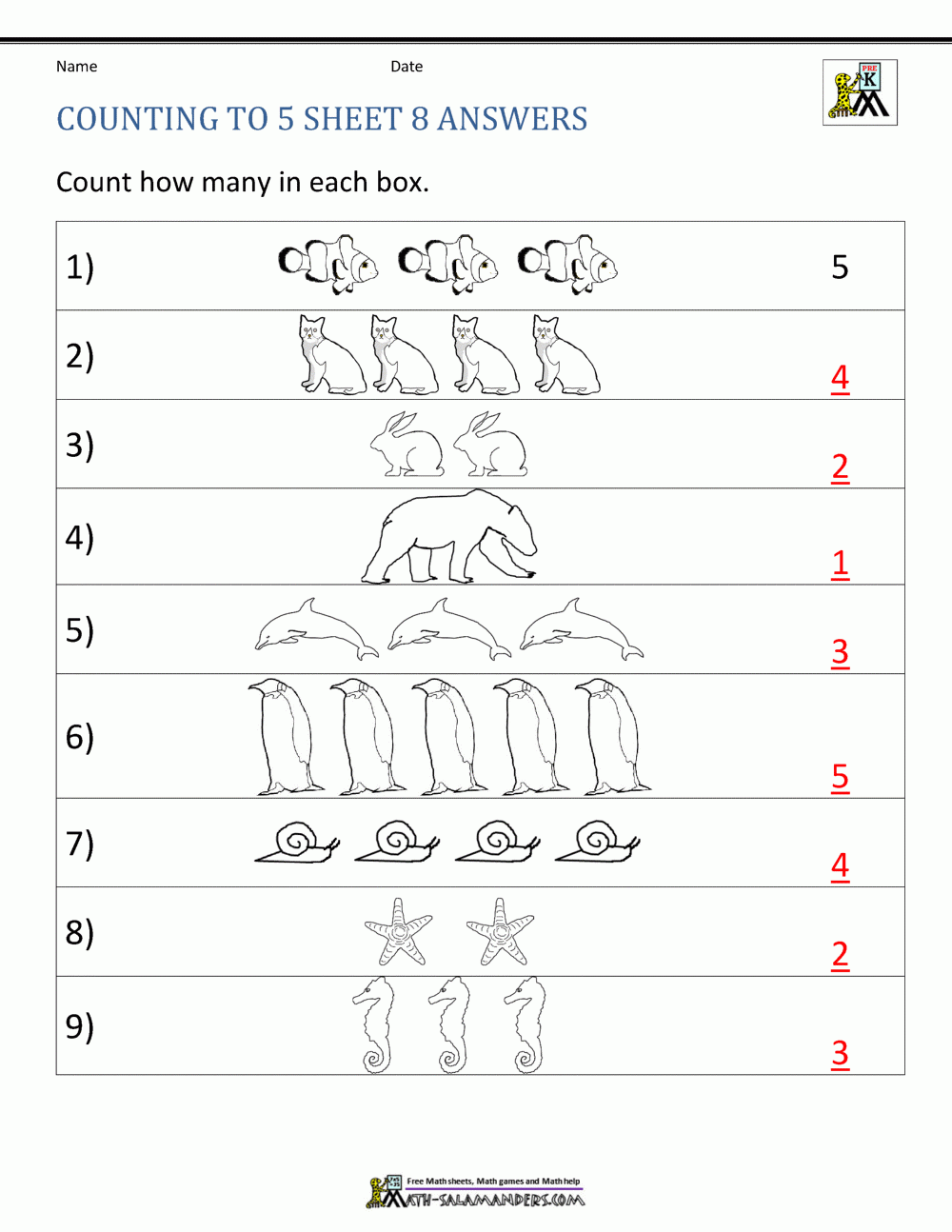 Kindergarten Math Worksheets Numbers 0-5