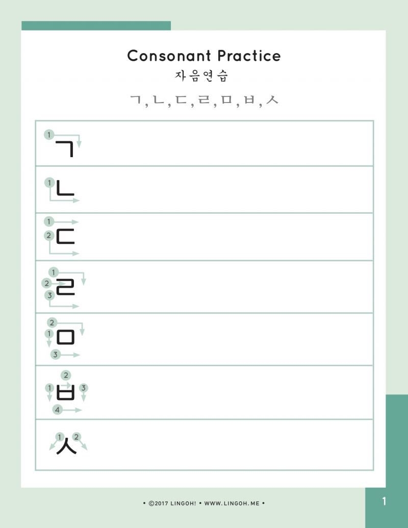 Hangul Worksheets Letter PDF Learn Korean Alphabet Writing For