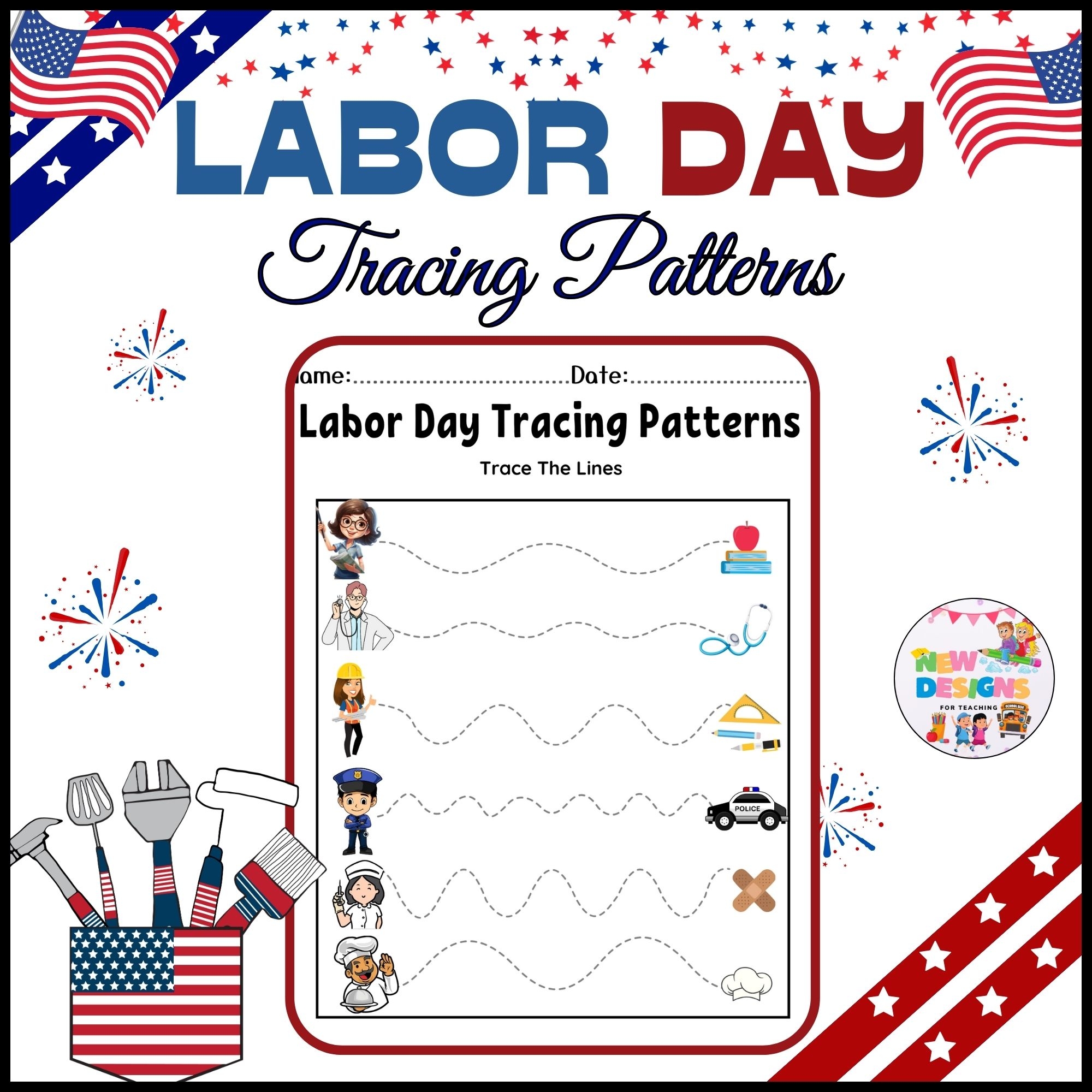 Labor Day Tracing Patterns Lines Printable Worksheets For Kids Made By Teachers