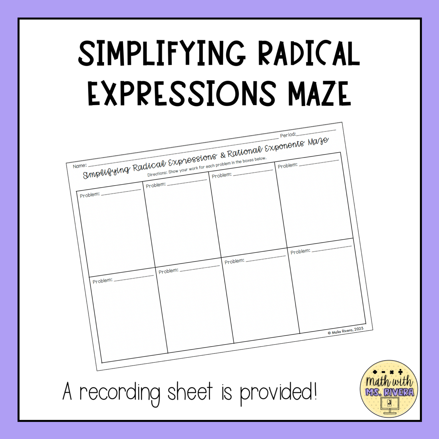 4 Simplifying Radical Expression Mazes W Variables Square Cube U0026 Higher Indexes Math And Science Sarah