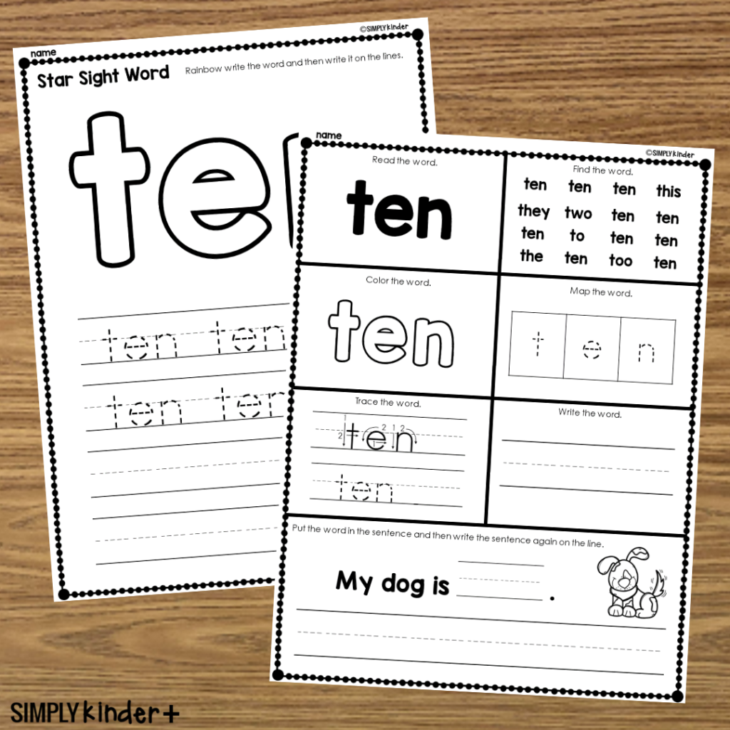 Ten Sight Word Printable Activities Simply Kinder Plus