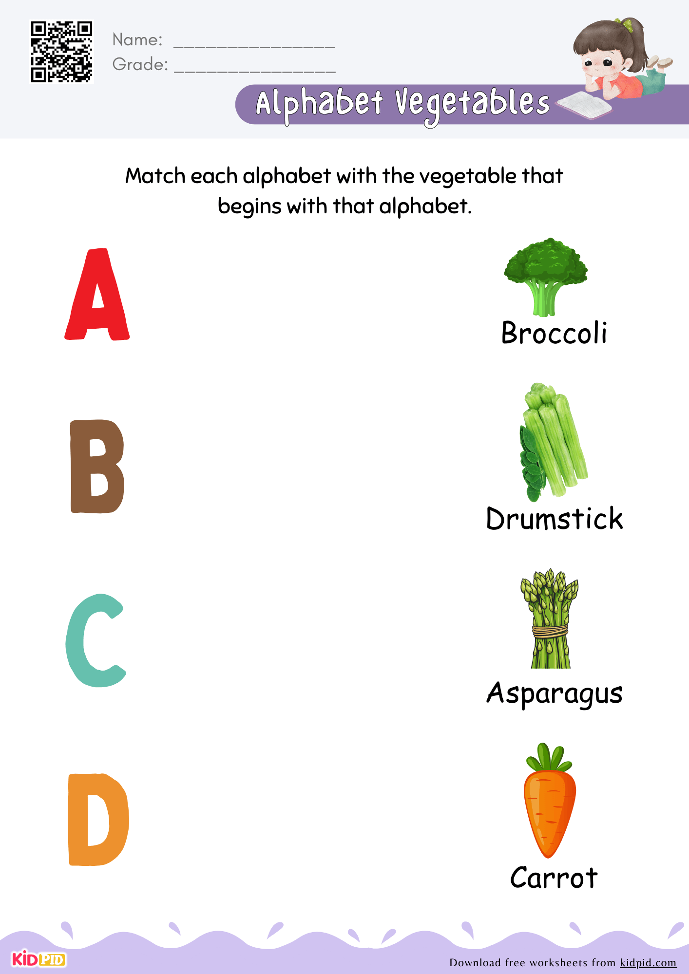 Alphabet Vegetables Matching Worksheet For Preschool