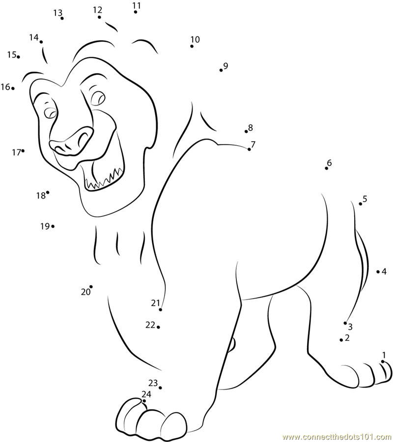 Lion King Simba Dot To Dot Printable Worksheet Connect The Dots