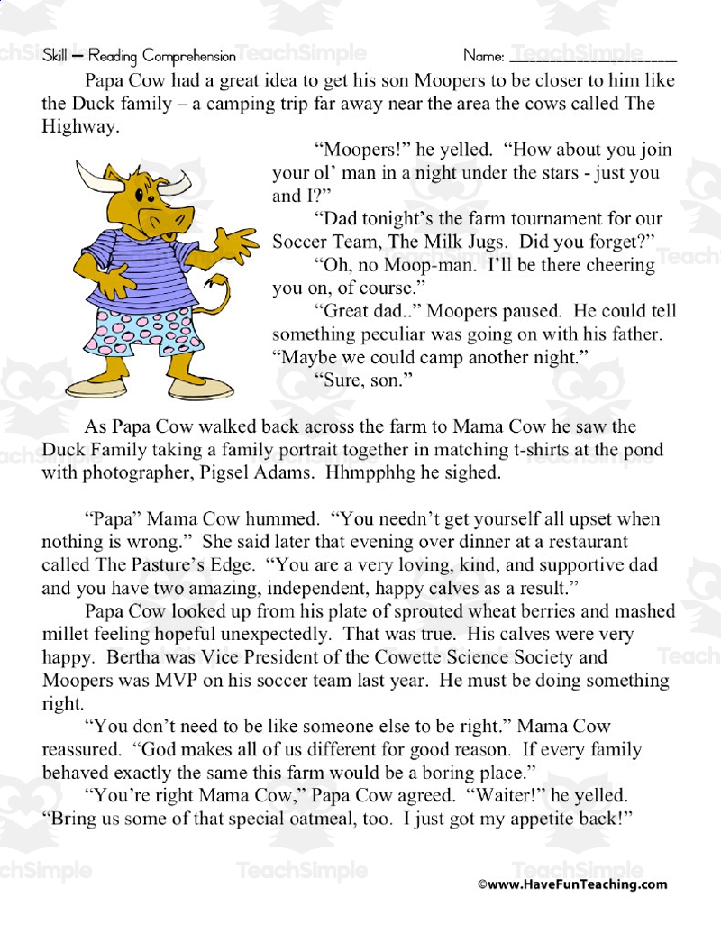 A Family Recipe Reading Comprehension Worksheet By Teach Simple