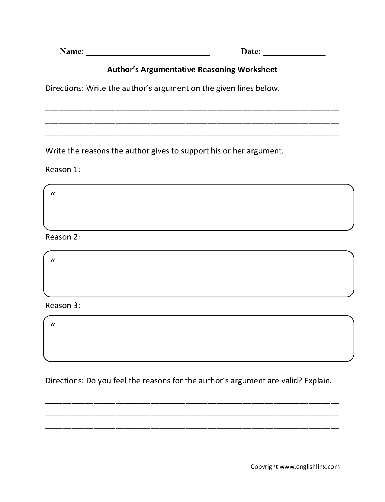 Reading Comprehension Worksheets Author s Argumentative Reasoning Reading Comprehension Worksheets