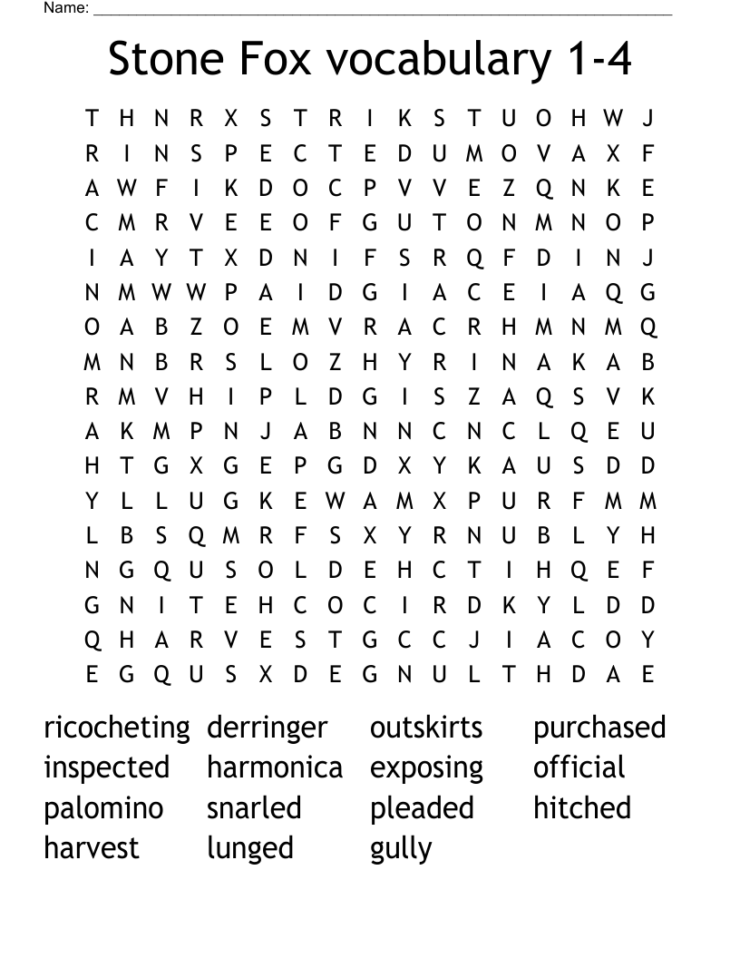 Stone Fox Vocabulary 1 4 Word Search WordMint